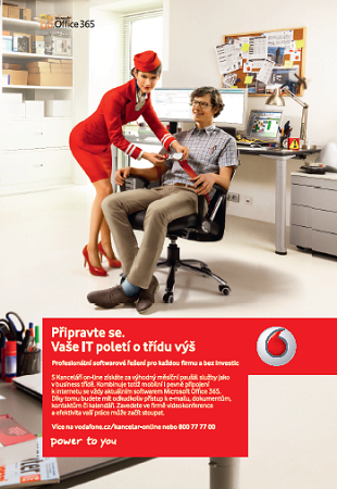 Vodafone spustí od 2. dubna kampaň na službu Kancelář online, která kombinuje mobilní a pevné připojení k internetu se softwarem Microsoft Office 365. Cílem kampaně je oslovit firmy, které by rády využívaly kvalitní kancelářské programy, ale nechtějí investovat větší částky do pořizování softwaru a dokupování aktualizací. Kampaň poběží do konce května v tisku, rádiu, online médiích a outdoorových médiích.