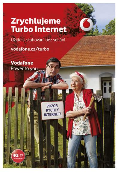 I v letošním roce komunikuje mobilní operátor Vodafone svou nabídku Turbo Internetu. Tentokrát se zaměřuje na jeho zrychlení ve městech a službu Připojení bez kabelu+. Tváří kampaně je herec Jiří Vyorálek, který vystupoval již v loňské kampani s vinařskou tematikou a jenž zvítězil ve anketě Zlaté Pecky o nejoblíbenějšího herce v reklamě. Sekundovat mu budou ambasadorky Turbo Internetu, tzv. turboholky.