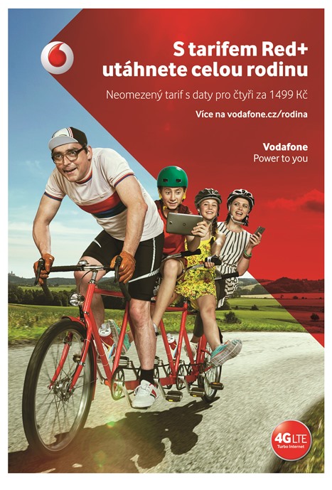 Mobilní operátor Vodafone startuje 13. července novou reklamní kampaň na podporu neomezeného rodinného tarifu Red+. Kampaň navazuje na předešlé s Jiřím Vyorálkem, který tráví volný čas se svou rodinou na chalupě. Tentokrát vyráží na cyklistický výlet, jehož symbolem je červené čtyřkolo znázorňující nabídku, která přináší neomezené volání, SMS, sdílená data pro čtyři členy rodiny za 1 499 korun.