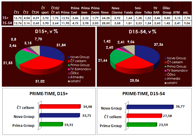 Talk show Všechnopárty (ČT1) se stala nejsledovanějším pořadem pátečního večera s průměrnou sledovaností 961 tis. diváků starších 15 let. Pohádky, které si pro večerní vysílání připravily ČT1 (Dešťová víla) a Nova (Honza málem králem), zaznamenaly srovnatelnou sledovanost na hranici 670 tis., resp. 660 tis. v divácké skupině 15 + (obě podíl 20 %), u mladších diváků 15-54 byla nejúspěšnější pohádka Honza málem králem.
