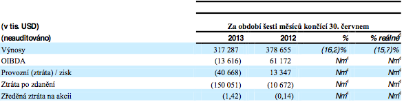 Výnosy CME celkem za první pololetí klesly o 16 % na 317,3 mil. USD, ztráta po zdanění za první pololetí 2013 činila 150,1 mil. USD (cca 2,9 mld. Kč) v porovnání se ztrátou 10,7 mil. USD (cca 208 mil. Kč) za stejné období roku 2012.
