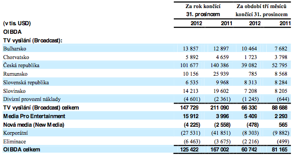 Provozní zisk před odečtením odpisů a amortizace (OIBDA) se loni celkově meziročně snížil o 25 %, v Česku pak o 28 %. Také v tomto případě je korunové srovnání pro CET 21 příznivější: OIBDA dosáhla 1,97 mld. Kč (meziročně -20 %). Do výsledku CME v Česku se promítly náklady spjaté s uváděním nových kanálů na trh v loňském roce (Fanda, Smíchov), tak rovněž povinné příspěvky na Fond kinematografie, které se za loňský rok odváděly poprvé. To v případě skupiny Nova představovalo cca 100 mil. Kč.
