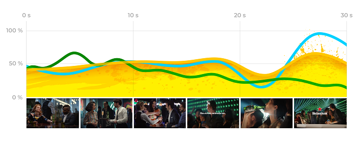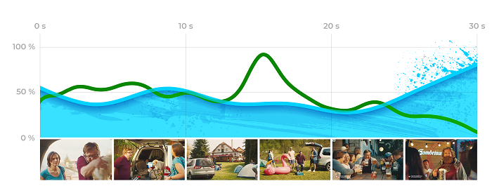 V obou kampaních je po celou dobu diváky jasně rozpoznatelná potřeba: jízda vlakem a pití piva. A vysoké jsou zároveň průběhy ostatních křivek. Gratulujeme!