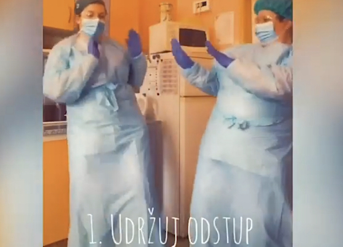„Udržuj odstup – myj si ruce – nedotýkej se obličeje – zatanči,“ to je český překlad jednoduché písně, na kterou tančí hasiči v ochranných oblecích, policisté v kuklách či sestřičky s ochrannými rouškami. K výzvě #coronavirusdancechallenge, jež se šíří po sociálních sítích, se ale přidávají i studenti, kteří hlídají děti zaměstnanců nemocnice nebo lidé uzavření doma v karanténě. Cílem je zábavnou formou šířit epidemiologickou osvětu.