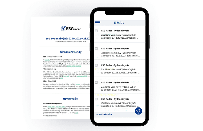 ESG Radar přináší informace o dění v oblasti legislativy ESG, byznysu, neziskového sektoru i státní správy. Poskytuje informace formou pravidelného týdenního mailingu nebo sektorových analýz pokrývající delší časové období či určité obory.