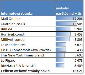 Návštěvnost internetových stránek evropských deníků se v letošním
