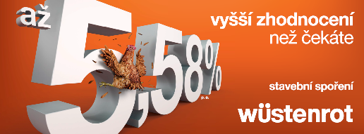 Finanční skupina Wüstenrot spouští od 1. listopadu reklamní kampaň na podporu stavebního spoření s průměrným ročním zhodnocením až 5,58 %. Kampaň, která poběží do poloviny prosince, zahrnuje televizní 15s spoty ve dvou verzích.