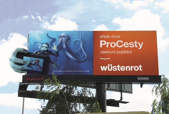 Cestovní pojištění je podpořeno kampaní, která poběží do 17. srpna v outdooru a na internetu. Kampaň využívá motivu potápěče a chobotnice a jejich společného autoportrétu, tzv. selfie. V rámci venkovní inzerce je také k vidění bigboard s nástavbou, umístěný na ulici 5. května v Praze.