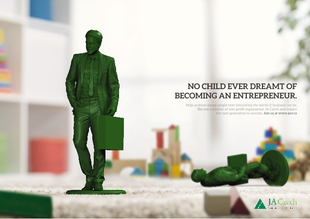 V kategorii Print vymýšleli soutěžící návrhy pro Junior Achievement, které potřebuje získat dobrovolné mentory pro studentské firmy, které jsou součástí výuky programů podnikatelství na středních školách.