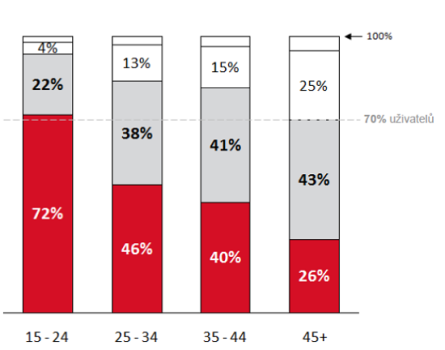 Frekvence návštěvnosti YouTube dle věkových skupin