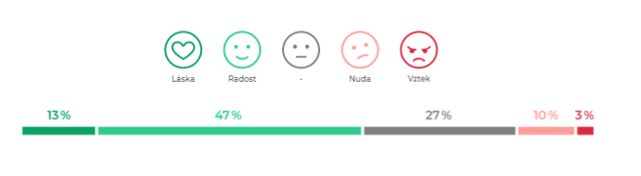 Emoce. Co se líbivosti týče, je reklama mírný nadprůměr. Silně nadchla 13 % diváků, ve 47 % vzbudila mírně pozitivní odezvu a u necelé třetiny nevyvolala nic.
