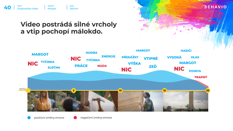 Srozumitelnost. Příběhu lidé většinou rozumí, v tom není zásadní problém. Ale jen pětině sedí video k brandu Margot, což asi nepřekvapí, vzhledem k tomu, že je to první krok od palem k českým lípám, na což nejsme nikdo u značky zvyklí.