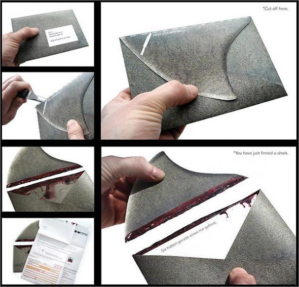 Direct mail, který měl za úkol upozornit na hrozící vyhubení některých druhů žraloka, si pohrál s tradičním způsobem otevírání obálek.