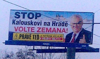 V outdooru Miloš Zeman na poslední dva dny prezidentské volby aktualizoval svůj billboard „Stop této vládě“ a „Stop Kalouskovi na Hradě“ o výzvu: „Právě teď. Je potřeba váš hlas. Přijďte volit“.