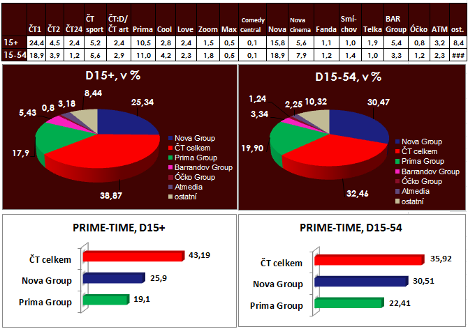 Česká televize díky StarDance jednoznačně ovládla sobotní večer. Ve „své“ divácké kategorii 15+ překročila v hlavním vysílacím čase 43 %. Zároveň byla nejsilnější skupinou i v divácké kategorii 15-54.
