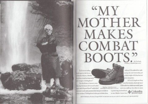 Velmi úspěšnou reklamní kampaní, která využila obrazu pečlivé, byť drsné maminky, byla ta na sportovní oblečení Columbia. Na vizuálech se objevila Gert Boyle, která po smrti svého manžela dokázala v 70. letech rodinnou společnost vytáhnout z bankrotu a znovu ji nastartovat. Její obraz s drsným výrazem a tetováním na rameni ukazuje, že i drsná žena myslí především na blaho svých dětí, například i tím, že pro ně chce do nepříznivého počasí to nejlepší outdoorové oblečení.