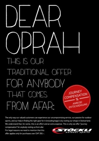 Podle Schilla je nutné posunout nyní reklamu od příběhů produktů k příběhům lidí, pro které jsou nabízené produkty určeny. Z tohoto důvodu je potřeba do hloubky pochopit pohled spotřebitelů a poznat, co od produktů očekávají. Za příklad může posloužit malá kampaň švýcarské outdoorové firmy Stöckli, která využila aféry, kdy v jednom curyšském luxusním butiku odmítli obsloužit slavnou moderátorku Oprah Winfrey. Na vybraných amerických zpravodajských portálech spustila firma bannery, v níž nabízela cenové zvýhodnění pro ty, co zavítají do jejích obchodů ve Švýcarsku zdaleka.