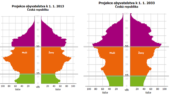Projekce demografického vývoje, kterou tento týden zveřejnil Český statistický úřad (ČSÚ), potvrzuje, že marketéři by měli výrazněji začít věnovat pozornost cílovým skupinám, které dnes považují za staré. Projekce je zpracovaná až do roku 2101 a potvrzuje dlouhodobě známé fakty, že česká populace stárne a její počet klesá. Podstatné ale je, že nejdůležitější změny ve struktuře demografie se mají podle predikce úřadu odehrát už v následujících třiceti letech, značně viditelně se struktura populace promění dokonce v horizontu dvaceti let. Změna bude představovat citelný pokles počtu lidí v produktivní skupině, kterou jsme s ohledem na současné marketingové cílení vymezili věkem 15-54, a naopak nárůst ve skupinách populace starší 55 let.