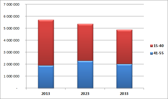 Ještě alarmující je přitom situace pro firmy, které cílí na mladší skupinu v rámci populace 15-54. Snížení počtu lidí v této skupině půjde totiž především na vrub lidí ve věku 15-40 let. Za dvacet let jich podle projekce ubyde téměř 950 tisíc.