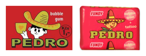 Jahodová žvýkačka Pedro s postavičkou v sombreru vznikla v roce 1968 v závodě ve středočeské obci Velim. Během normalizace se těšila popularitě. Po privatizaci v porevoluční době se závod dostal do rukou společnosti Nestlé, která výrobu žvýkaček ukončila. Později značku koupila společnost Candy Plus, která Pedro vrátila v roce 2011 zpět na pulty. Návrat značky však poznamenal spor. Konkurenční společnost IN Trading si v roce 2006 zaregistrovala název Pedrino s původním obrázkem Pedra, proto je novodobý Pedro vizuálně trochu pozměněn. Marketingově však příliš podporován není, i proto si o své někdejší slávě může zatím nechat jen zdát.