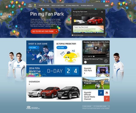 Čtyřletá periodicita světových sportovních meetingů stojí v čím dál napínavějším kontrastu k dravému vývoji komunikace ve virtuálním prostoru. Což platí i o letošním mistrovství světa ve fotbale a veškerém buzz marketingu o něm na internetu. Pokud by se dal vyhlásit vítěz v kategorii on-line, byla by to jednoznačně korejská automobilka Hyundai a její nepřetržité společenské angažmá na sociálních sítích. Jednoznačně nejviditelnějším počinem na internet je její Fan Park, světová platforma pro všechny fotbalové fanoušky, kde mohou sdílet fotky, videa a další obsahy související s jejich velkým fotbalovým svátkem a s jejich top stars. Hyundai rovněž fanouškům naservírovala interaktivní herní aplikaci Shoot and Save či tipovací aplikaci Octopus Prediction.