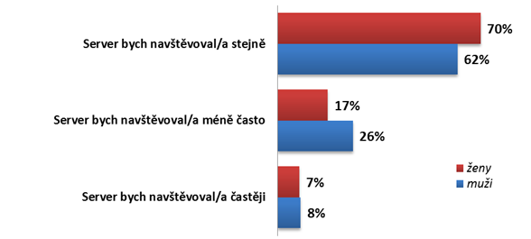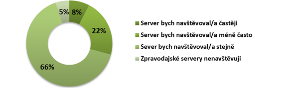 Pouze 8 % lidí uvádí, že by svůj oblíbený zpravodajský portál navštěvovalo častěji, kdyby byly zrušeny diskuse pod články. Jedná se přitom především o lidi starší 55 let. Celkově by ale došlo ke snížení návštěvnosti serverů, protože by 22 % lidí naopak přestalo svůj oblíbený server navštěvovat. Zde se jedná o mladší a střední generaci s věkovým omezením do 44 let. 66 % by v případě zrušení diskusí navštěvovalo svůj zpravodajský server i nadále. Jedná se přitom častěji o muže než o ženy a dále o lidi s vyšším vzděláním.