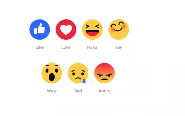 Vedle stávající ikonky "like" mají mít uživatelé nově na výběr tlačítka "love", "haha", "wow", "sad" a "angry". Z pilotních testů vypadl návrh na tlačítko "yay". Mezi novými ikonkami se také neobjevuje tlačítko "dislike", po kterém někteří uživatelé volali.